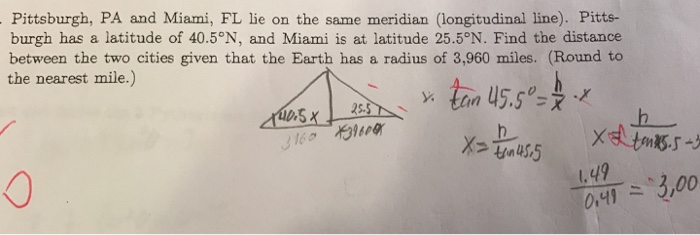 Solved Pittsburgh Pa And Miami Fl Lie On The Same Merid Chegg Com